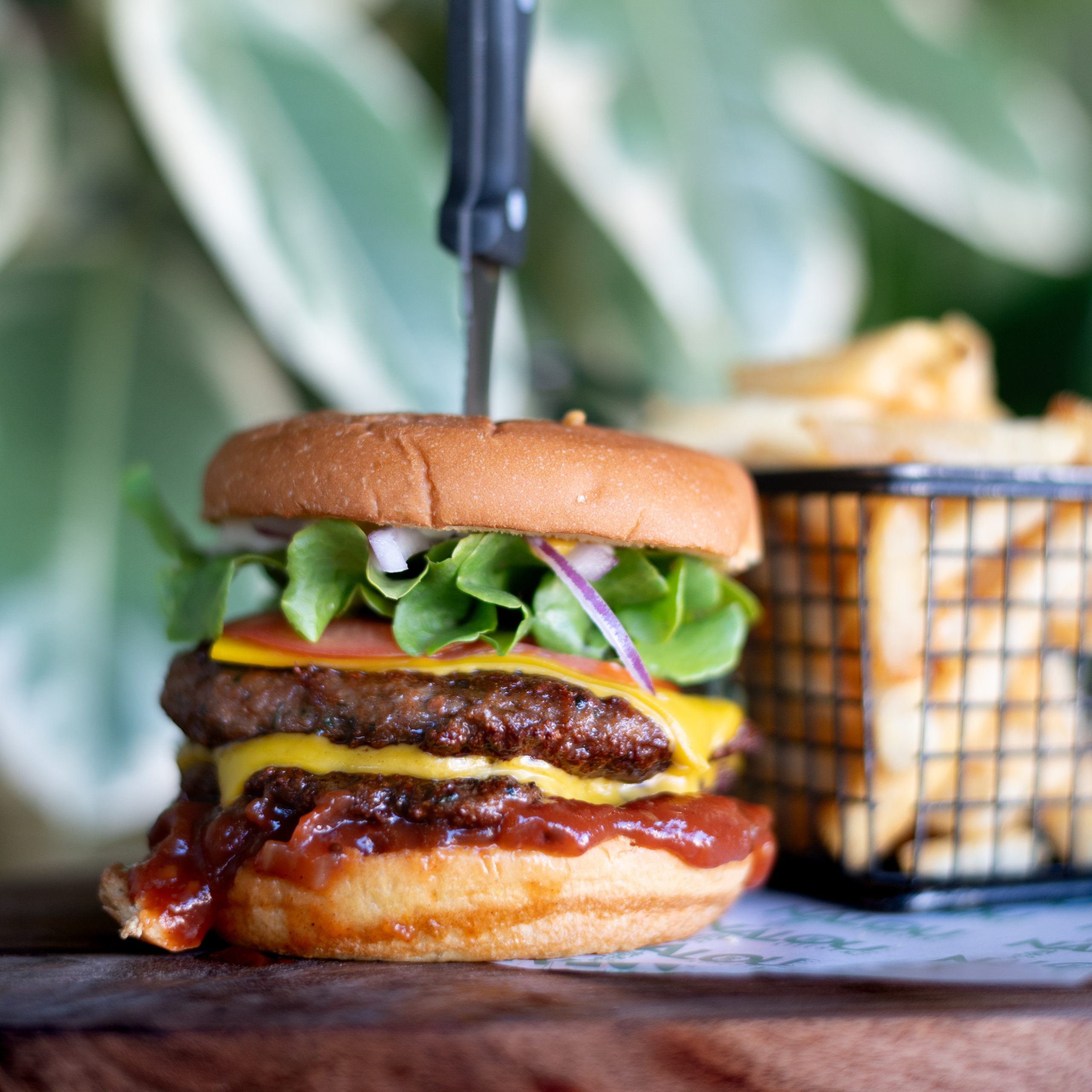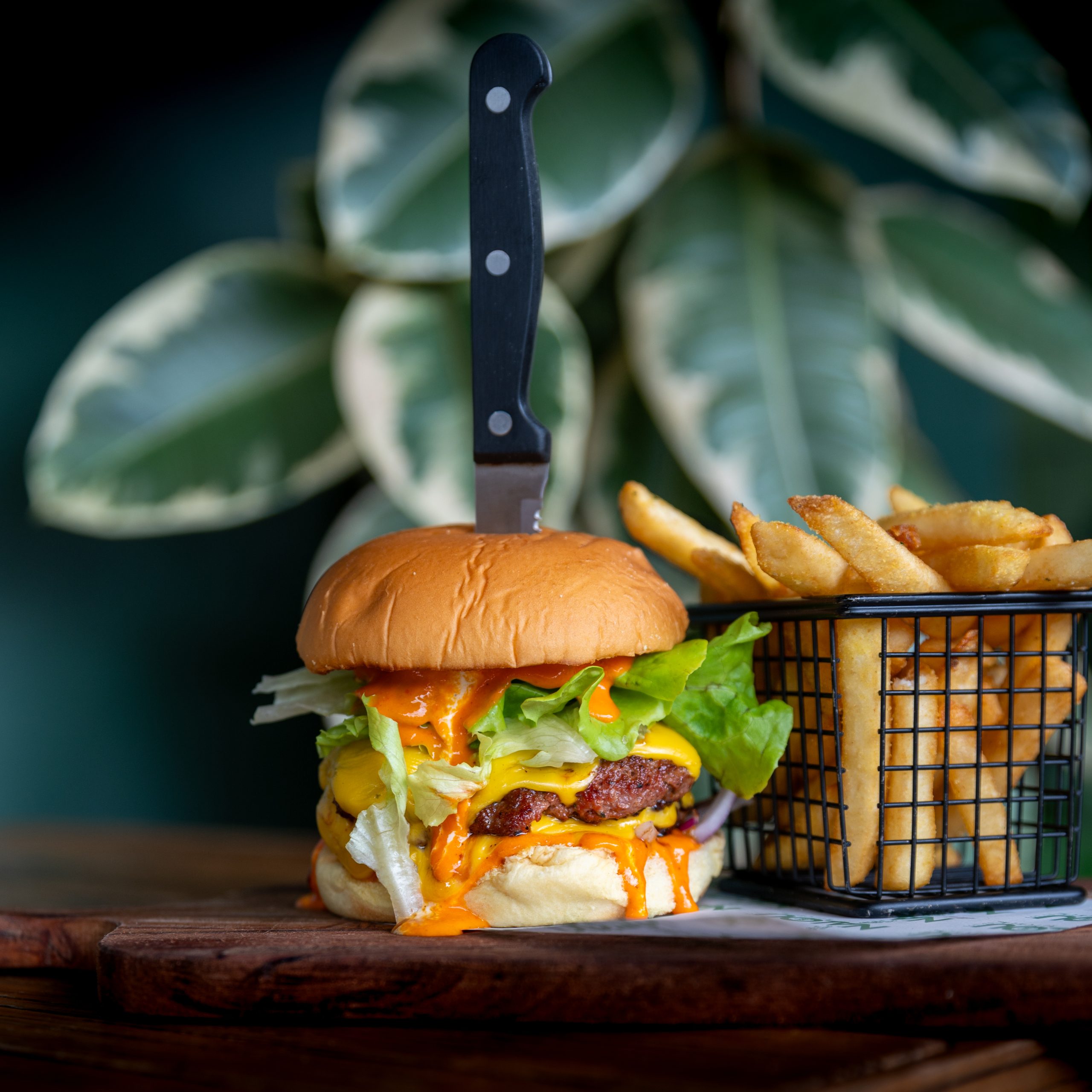 Double Beef Pattie, American Cheese, Chilli Onions, Fried Jalapeños, Lettuce, Cayenne Sauce